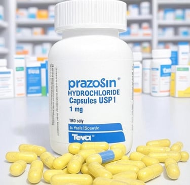 Prazosin hydrochloride works by relaxing blood vessels to help lower blood pressure and improve blood flow. Beyond its primary use for hypertension, the medication is also commonly prescribed to treat nightmares and other sleep disturbances in patients with post-traumatic stress disorder (PTSD), according to the National Institutes of Health.
